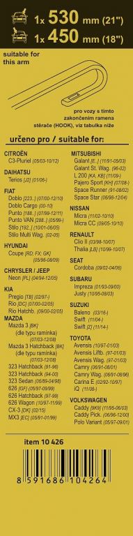 Lapos ablaktörlő szett, csatlakozás típusa: különleges a meghatározott modellekhez, Ez a ablaktörlő szett a Fiat Dobló/Punto típushoz alkalmas.