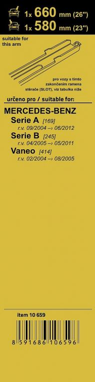 Lapos ablaktörlő szett, csatlakozás típusa: különleges a meghatározott modellekhez, Ez a ablaktörlő szett a Mercedes-Benz A típushoz alkalmas
