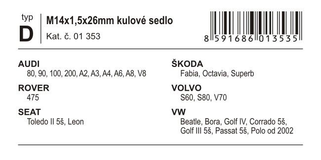 | ŠKODA | Fabia, Octavia I, Octavia II, Octavia III, Rapid, Roomster, Superb, Yeti |