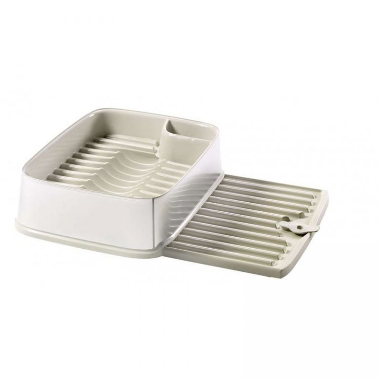 Praktikus négyszögletes csepegtető tálca kihúzható kiegészítő csepegtetővel, amely el van helyezve a csepegtető tálca alá. Csepegtető tálca krém-ezüst színű.