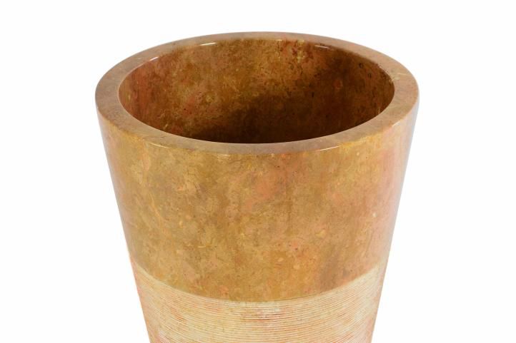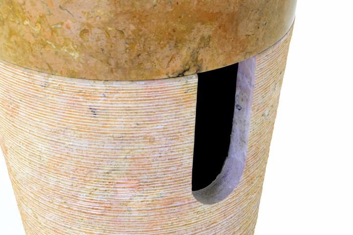 Legmagasabb minőségű márványból készült exkluzív mosdókagyló. Kézzel készített, egyedi és időtlen dizájn. A márványmosdó kiemelkedik kiváló minőségű feldolgozásával, mely biztosítja a nem igényes karbantartást. Mindegyik mosdókagyló különlegesség, ezért az egyes termékek méretben, alakban és színben eltérhetnek egymástól. Emiatt nem vesszük figyelembe a feltüntetett hozzávetőleges méretektől való eltéréssel kapcsolatos panaszokat.