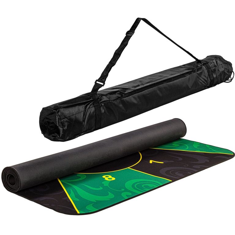 A pókerszőnyeg legfeljebb 10 játékos számára alkalmas. Az elülső oldal vízlepergető poliamidból készült, és az anyag kellemesen puha és sima tapintású (egérpadhoz hasonló). A hátoldal csúszásmentes természetes gumiból készült - a gumibevonat megakadályozza a pad csúszását. A párna a helytakarékosság érdekében feltekerhető, és a mellékelt hordtáskával bárhová könnyen magával vihető.