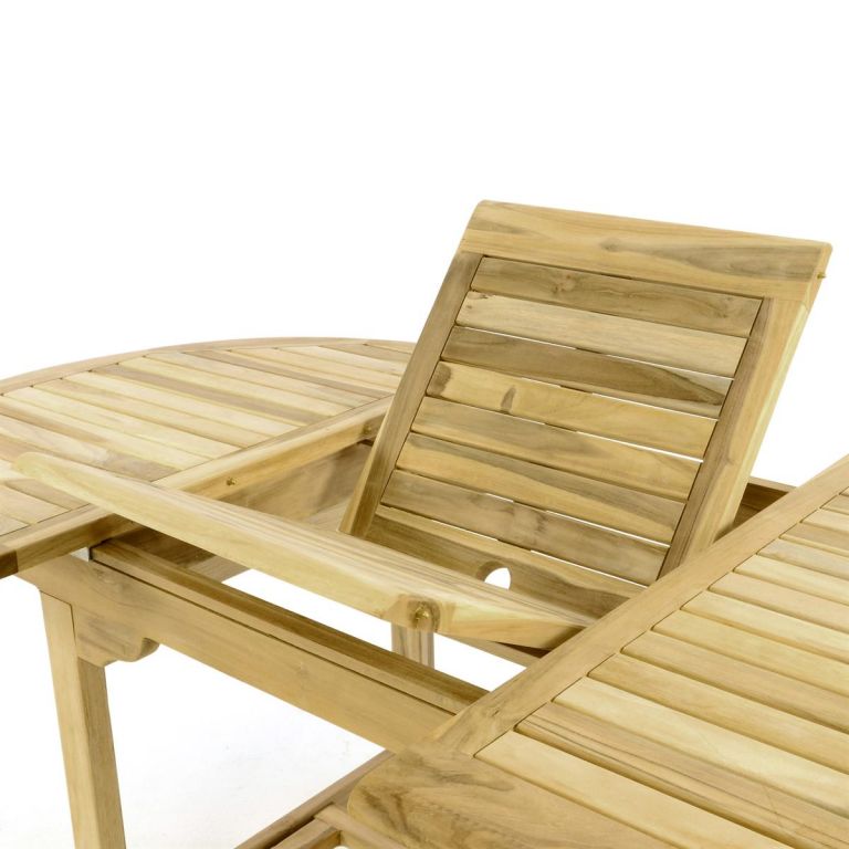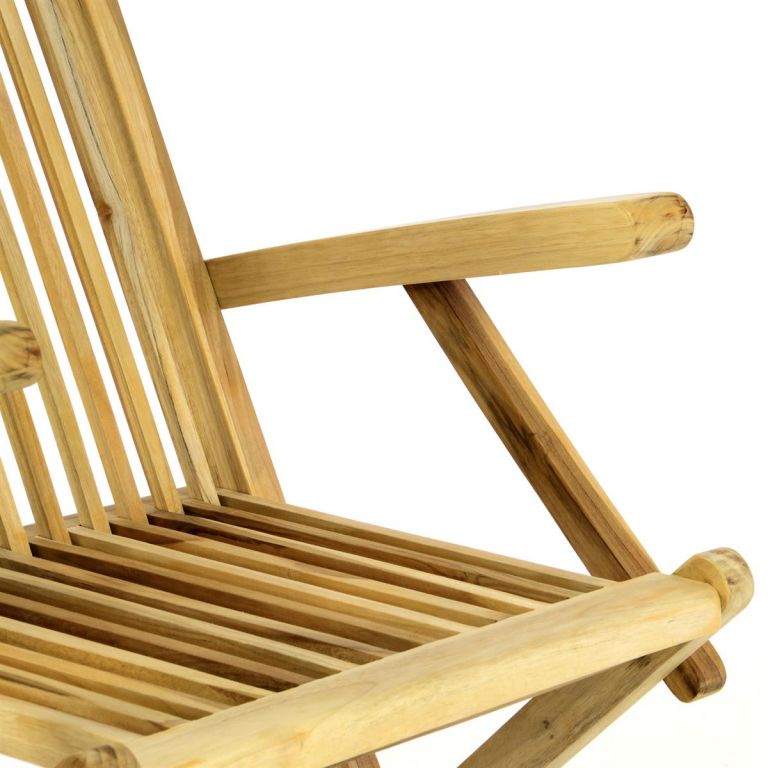 Elegáns és praktikus összecsukható kerti bútor tíkfából, mely kitűnik az alapos megmunkálásával. Ideális teraszra, kertbe. A tíkfa ellenáll az időjárás viszontagságainak, ezért ideális kinti használatra. Jellemzői a természetesség, tartósság és időtlen elegancia.