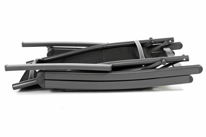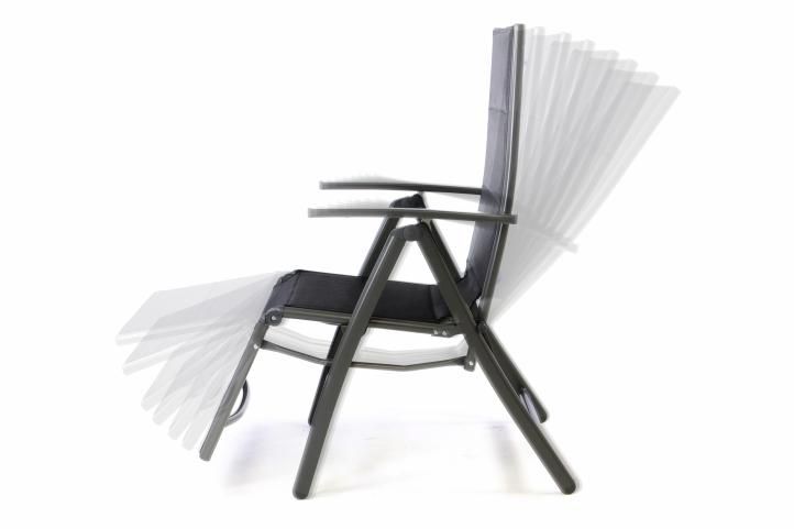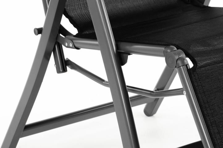 Luxus összecsukható nyugágy kényelmes párnázott háttámlával és üléssel komfortot nyújt a teraszon vagy a kempingezésnél. Fém állítható sínek (állítható hét különböző pozícióba), és extra széles lábak biztosítják a hosszú élettartamot. Ez a modell használható nem csak mint egy relaxációs szék, hanem mnt nyugágy napozásra. Kiváló minőségű anyag (PVC - bevonatú poliészter) időjárásálló és a varratok össze vannak hegesztve. Az anyag biztosít optimális szellőzést az ülésén és a háttámlán. Lazán húzott hálózati anyag egyedileg alkalmazkodik a hát kontúrjához. Lehetséges használni teraszon és kertben, erkélyen, strandon vagy kempingben.