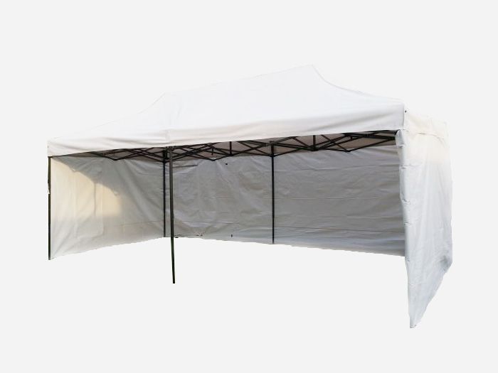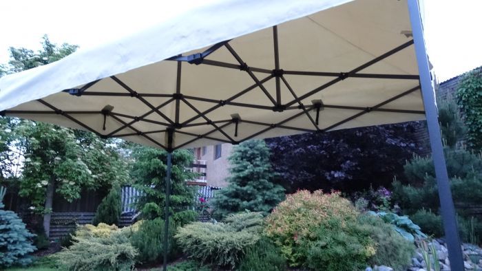 Kerti párti sátor nap, szél és esö mentes. Ideális a kerti ünnepségekre és ballagásokra. A sátor összecsukható teljes fémszerkezettel rendelkezik. A tető vitorla kiváló minőségű anyagból készül.