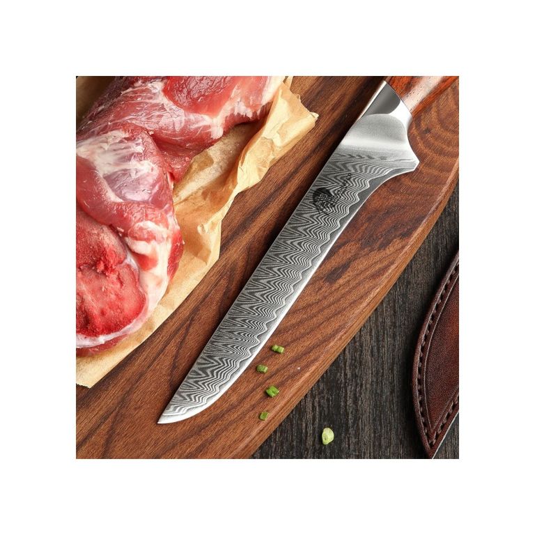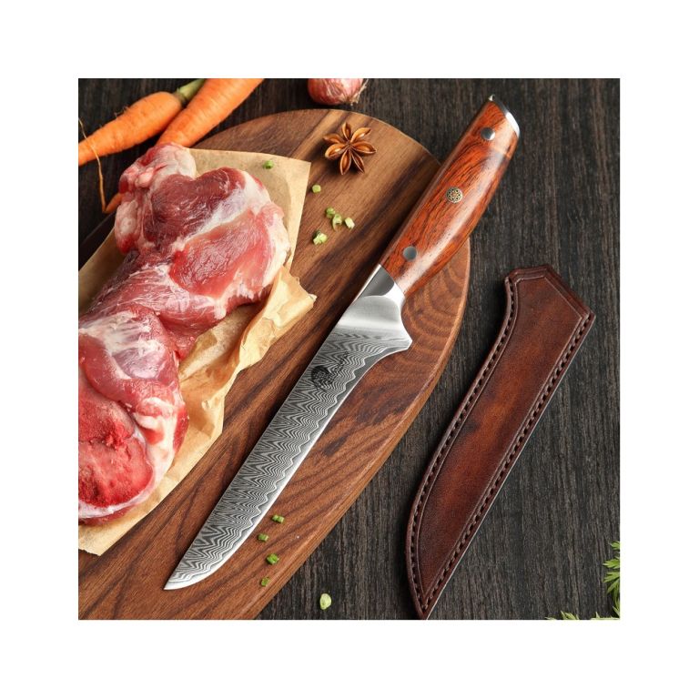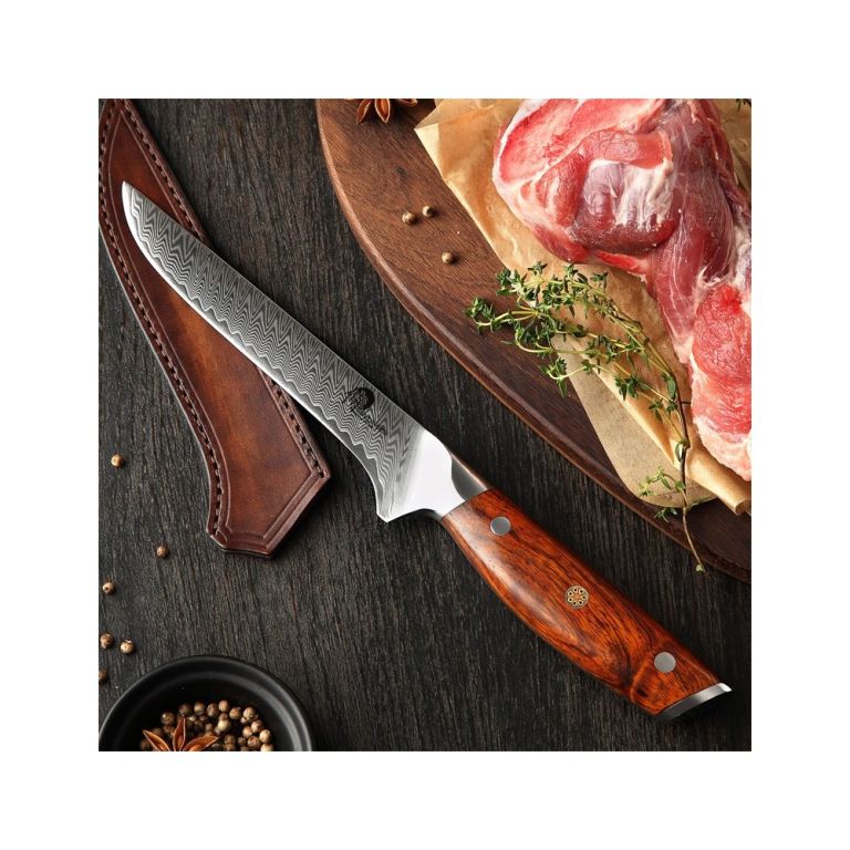 A Dellinger 6"-os konyhai csontozókés a Rose-Wood Damaszkusz sorozathoz tartozik. Az acélpenge és a rózsafa markolat minőségi kivitelezése egy modern csontozó kést alkot. Értékelni fogja a japán kés képességeit a hús csontról való leválasztásakor, az inak, a zsíros részek vagy a porcok elválasztásakor. A kúpos penge az ízületek körüli csontozásra is alkalmas. A kést születésnapi vagy karácsonyi ajándékként is ajánljuk szeretteinek.