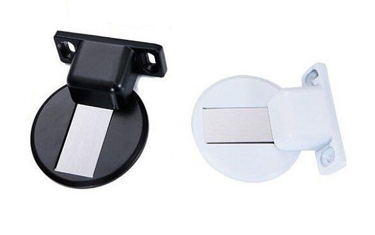 Mágneses ajtómegállító. Csavarokkal és dübelekkel, vagy a másik módon, kétoldalas ragasztószalaggal, csavarok nélkül is felszerelhető. A mágneses ajtómegálló két részből áll: a padlószerelvényből és az ajtószerelvényből. Megakadályozza az ajtó könnyű becsapódását a huzatban és az ajtó közelében lévő bútorok esetleges sérülését.
