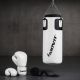 Biztonságos és robusztus acéllánc ötpontos felfüggesztéssel a biztonságos rögzítéshez, nylon hurkok a lánc rögzítéséhez, továbbá szegecsekkel rögzítve. A boxkesztyűk hüvelykujjrögzítéssel vannak ellátva, habszivaccsal vannak ellátva és lyukakkal vannak ellátva a levegő és a tépőzár számára.