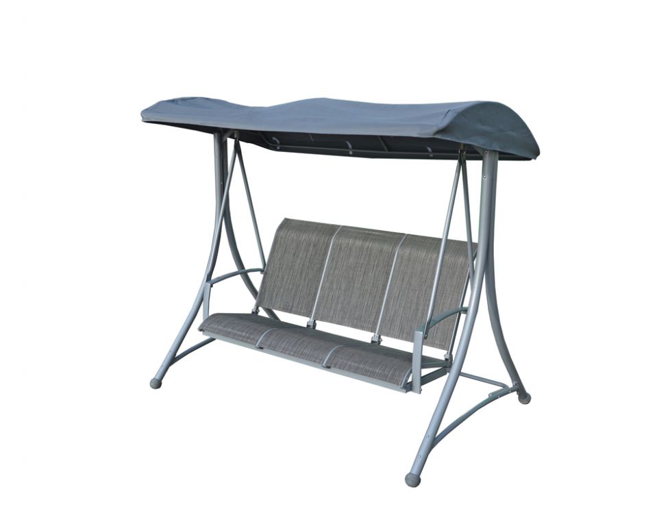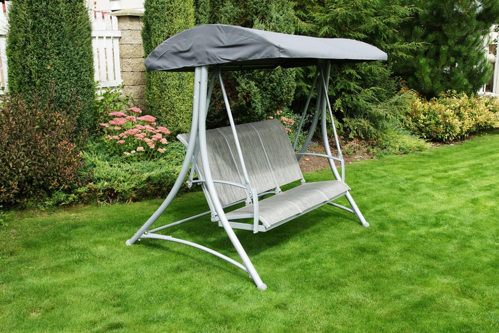 Ez a kerti hinta vonzó modern dizájnnal rendelkezik, és ideális a kertbe vagy a teraszra. Szerkezete fém, anyaga poliészter, az ülőke Textilen. Előnye a praktikus, dönthető ernyő, amely árnyékolóként szolgál.