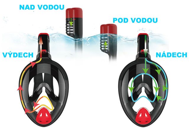 A búvár teljes arcmaszk beépített légzőcsővel egy új termék a búvárkodáshoz. ez a búvárruha új koncepciója, amely az úszó száját is eltakarja. Ez különösen előnyös azoknak a gyerekeknek, akik még nem tudják szilárdan a szájukban tartani a légzőcső. A maszk csak a felszínen teszi lehetővé a merülést. Nagy előnye a kupolás okulár, amely szinte egyenes szögben - 180 ° -ban teszi lehetővé a látást. A maszk zárt terében orron és szájon keresztül lehet lélegezni. Ez nagy előnye, hogy nem lehet belélegezni a vizet. A maszkba bejutó korlátozott mennyiségű víz a lefúvatószeleppel kifújható, ha a fejet a felület fölé emeljük. A maszk felső részébe épített speciális légzőcső konstrukció megakadályozza a víz behatolását.