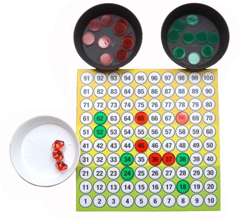 A játékot átlátszó zsetonokkal játsszák, és a zsetonok elhelyezése a kockadobás és az értékek összegének vagy többszörösének dobása után történik. A kockák értékei 1-től 10-ig terjednek. Az összeadás és kivonás játékban egyszerre három ilyen kockát dobunk, és a kockán lévő értékek összegét hozzáadjuk vagy kivonjuk a már elhelyezett zsetonokból, vagy a táblán lévő értéknél egy zsetont a táblán kívülre helyezünk. A szorzás és osztás játékban két ilyen kockával dobunk, és a zsetonokat a szorzásnak vagy osztásnak megfelelően helyezzük el a táblán.