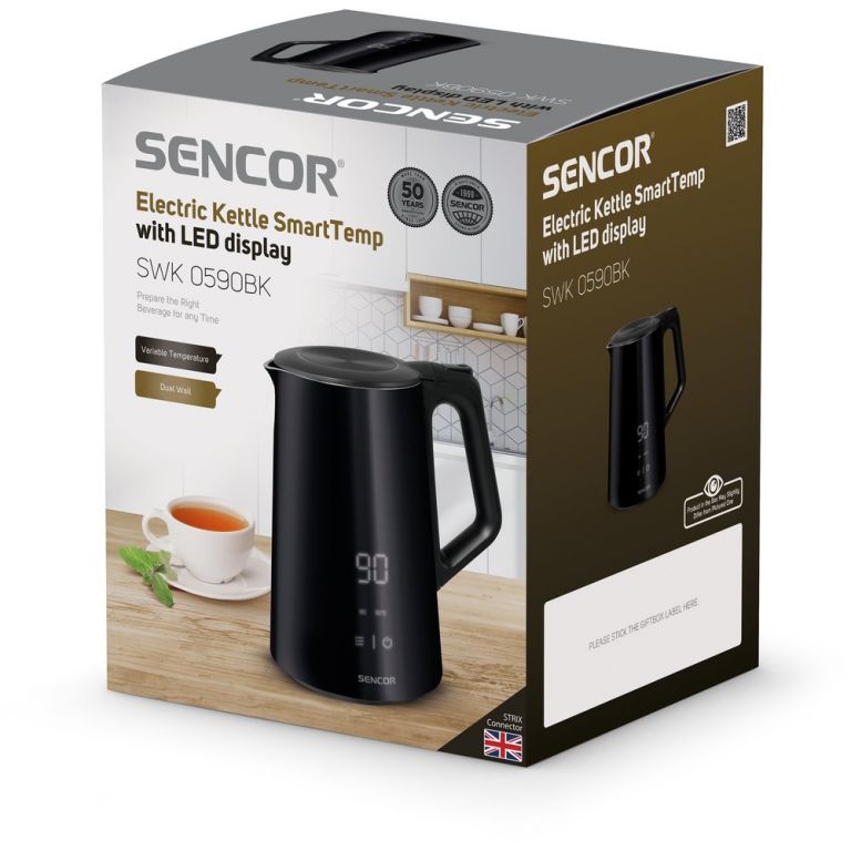 A Sencor vízforraló egyszerű kezelésével rabul ejti majd 2 érintőgombbal és egy digitális monokróm kijelzővel, amelyen valós időben láthatja a víz hőmérsékletét. Lehetőséget kínál a felmelegített víz hőmérsékletének elektronikus szabályozására is, ahol 4 különböző érték közül választhat 40/80/90/100 °C. A Keep Warm funkció minden jó tea és kávé szerelmesének örömet okoz, amikor akár 30 percig is képes fenntartani a kívánt vízhőmérsékletet. Ha véletlenül víz nélkül kapcsolja be a vízforralót, a termosztát egy bizonyos hőmérséklet elérésekor automatikusan lekapcsolja az elektromos áramkört, és a vízforraló magától kikapcsol. Az automatikus kikapcsolás funkciónak köszönhetően gond nélkül távozhat, és bekapcsolva hagyhatja a vízforralót. A vízforraló 1,5 literes, vízjellel ellátott belső edénnyel rendelkezik, melynek köszönhetően kb. 6 csésze 250 ml térfogatú teát vagy egyéb forró italt főzhet. A tartály kiváló minőségű rozsdamentes acélból készült, amely könnyen tisztítható, ezért széles körben használják az élelmiszer- és tejiparban. A fedélen lévő gomb megnyomása után a vízforraló magától kinyílik, így kényelmesen feltöltheti vízzel. A központi csatlakozó segíti a vízforraló könnyű elhelyezését az alapra, a 360°-ban elforgatható talpának köszönhetően pedig szilárdan a helyén marad, bármilyen szögből könnyen felemelhető és visszahelyezhető.