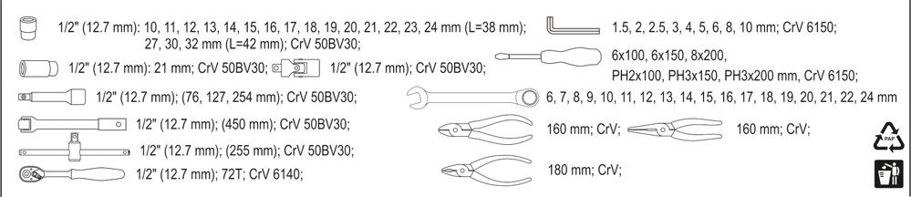 A részletesebb leírás megtekintéseYATO Professzionális Szerszámkészlet 1/2" dugókulcsokkal és egyéb szerszámokkal